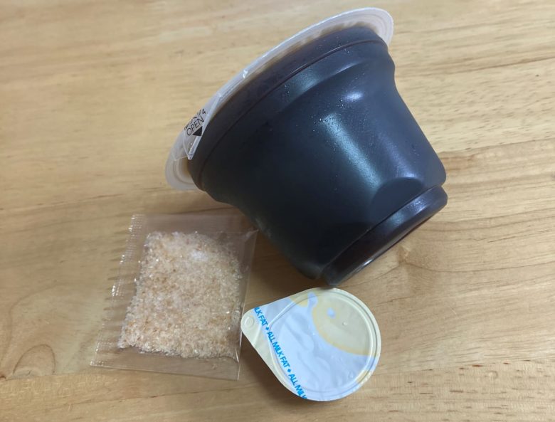 中には205gもある大きなコーヒーゼリーと、コーヒーフレッシュ、コーヒーシュガーが入っています。