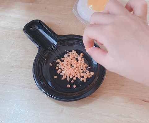 フライパンのかたちの容器にキャンディをのせてからゼリーを入れると、パチパチとキャンディが弾けて、まるで火にかけているような音が鳴ります。
