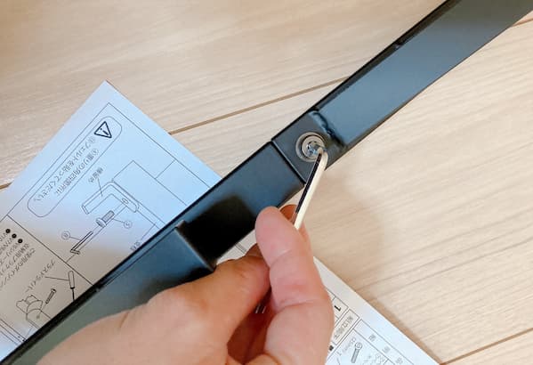 まず、棒パーツ2本をネジで留めます。