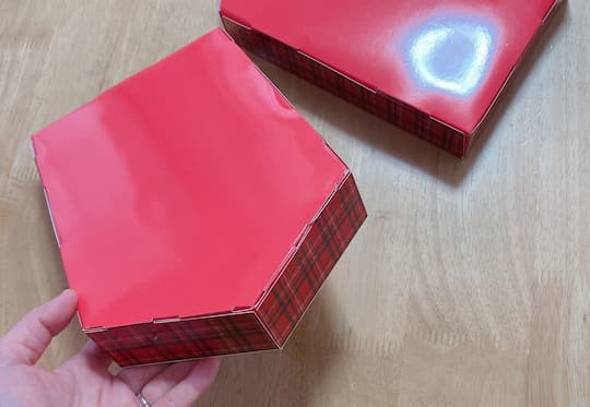 つぎに、しきりを山折りにして組み合わせ本体にはめ込みます。