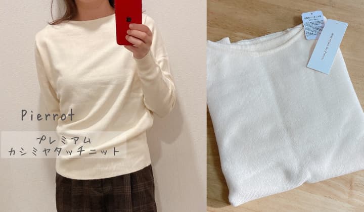 楽天のPierrot(ピエロ)ネックが選べるプレミアムカシミヤタッチニット コスパ最強!【口コミ・レビュー】
