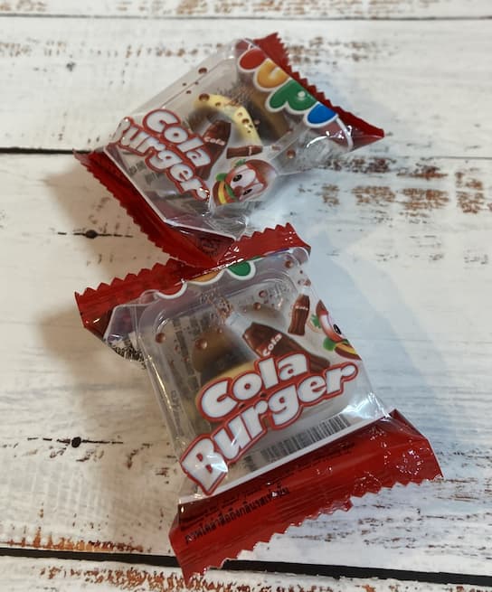 ハンバーガーの形をしていて、味はコーラ味というなんとも不思議なグミです。