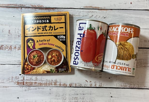 最後にホールトマト缶とココナッツミルク