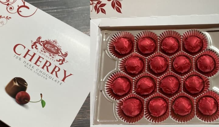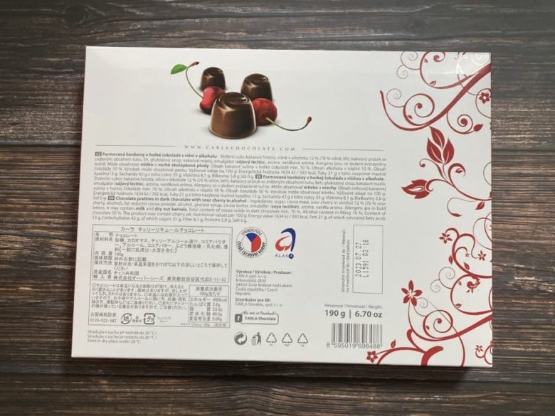 今回はカルディのバレンタインチョココーナーにあったカーラのチェリーリキュールチョコのレビューです。