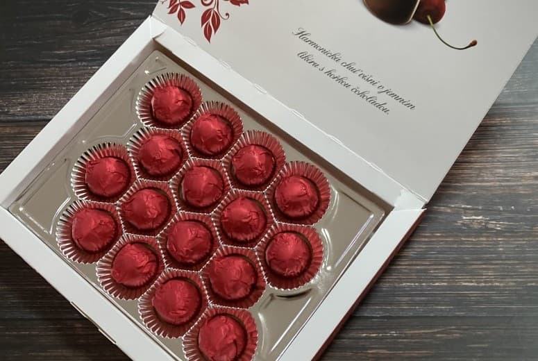 紙をめくると、サクランボのように赤い包装紙に包まれたチョコレート
