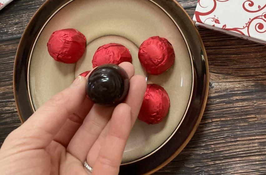 チョコを切ってみると中に洋酒漬けのチェリーが入っています。