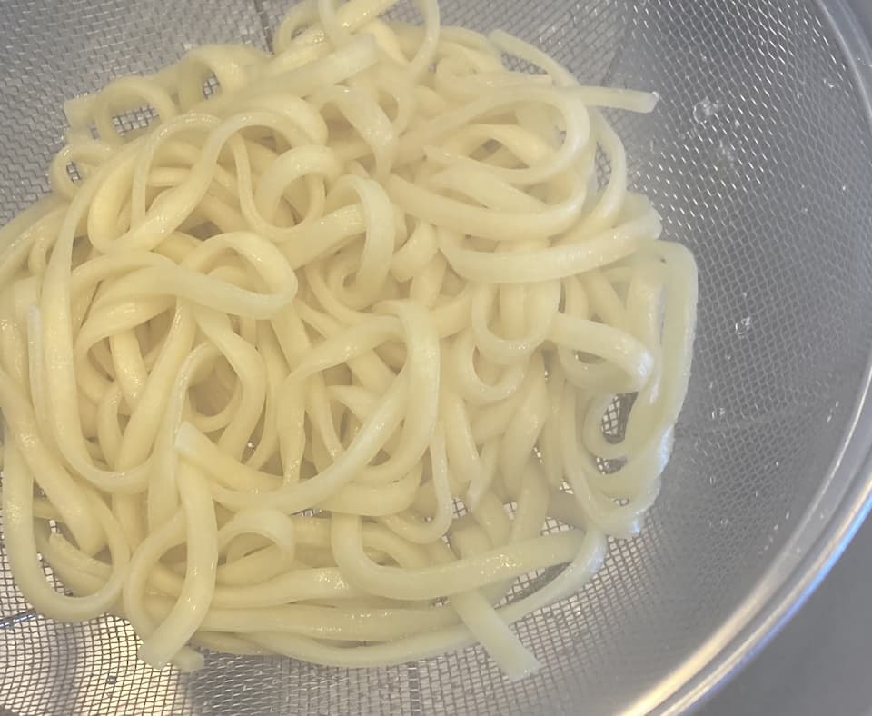 パスタが茹であがりました。