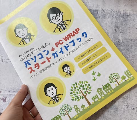 パソコンにはスタートガイドブックも同封されているので、ネット接続が分からない方でも安心。