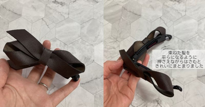 クリップで髪をとめるときは、ゴムで髪を結んだあと、結んだ下のあたりを広げてペタンコにしてそこにクリップを持ってきて挟むといい感じにまとまりました。
