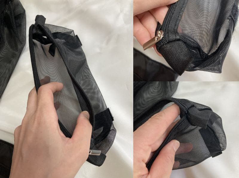 メッシュポーチは大きめサイズが2個、小さめサイズが2個ついています。