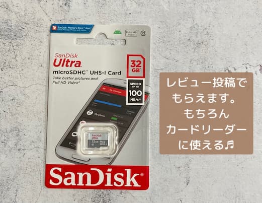 また、SDカードは購入後のレビュー投稿でもらえます。