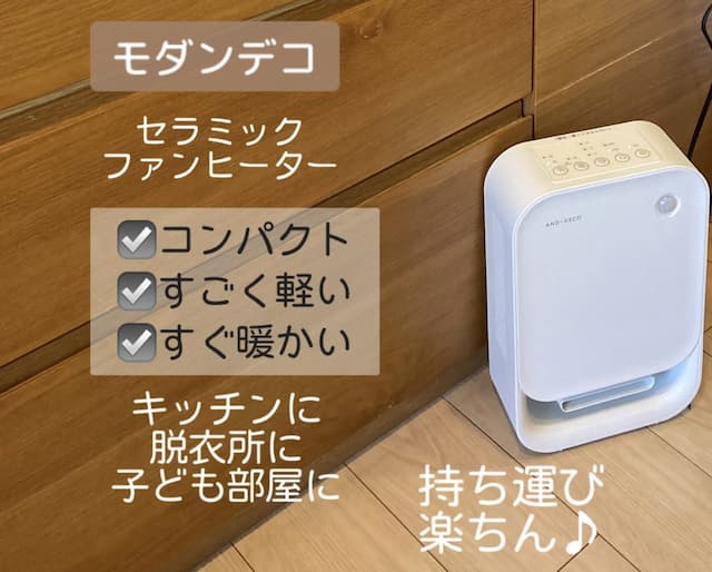 モダンデコのセラミックファンヒーターは小さな子がいる家にもおすすめです。