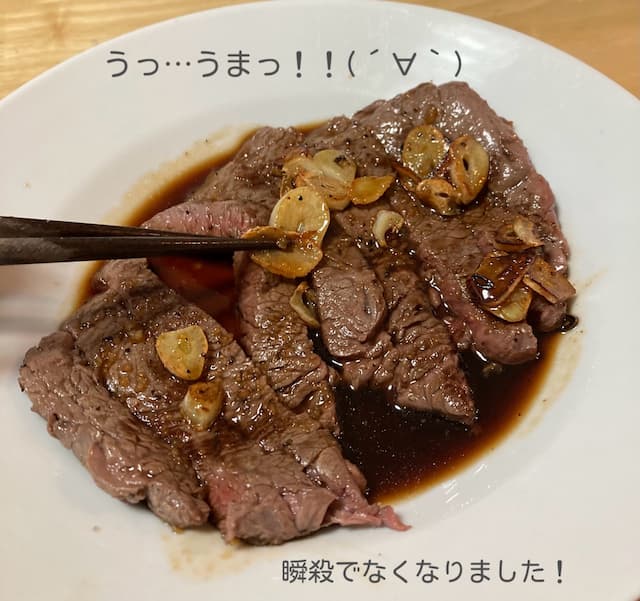 A5等級の赤身ステーキは、赤身なのに柔らかくて肉の風味が濃厚でした。(この記事はPRを含みます。)