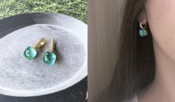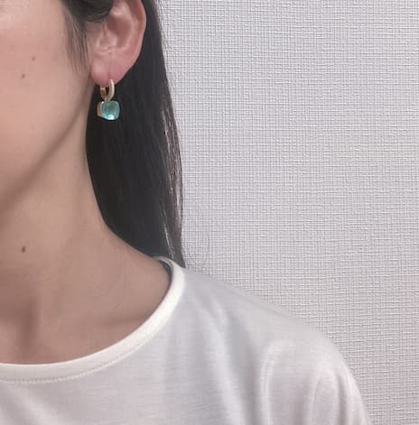 ジルコニア クォーツピアスを実際につけてみました。