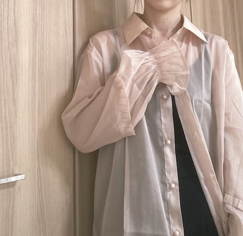 フリルスリーブがアクセントになったシアーシャツ