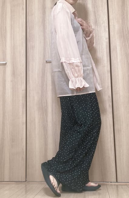 ブラウス自体はシンプルで、甘めなのは袖デザインだけ