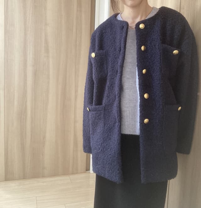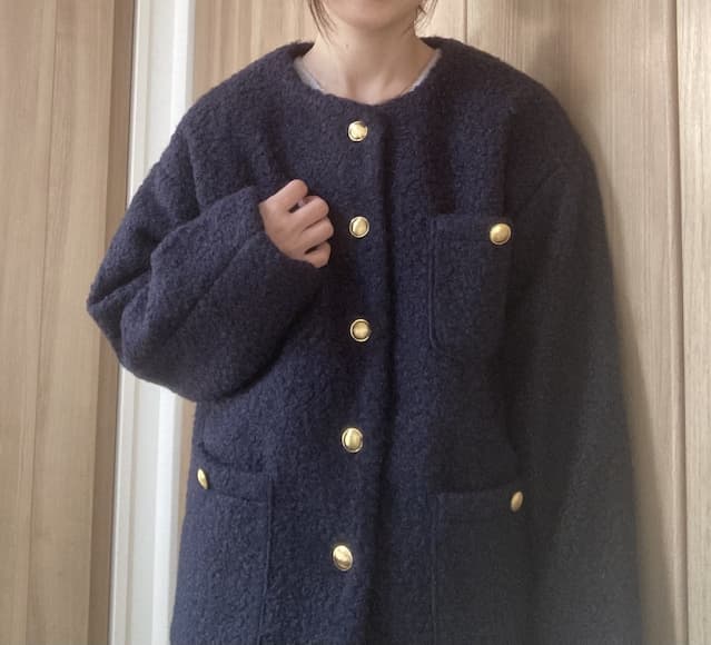 プードル金釦ノーカラーコート