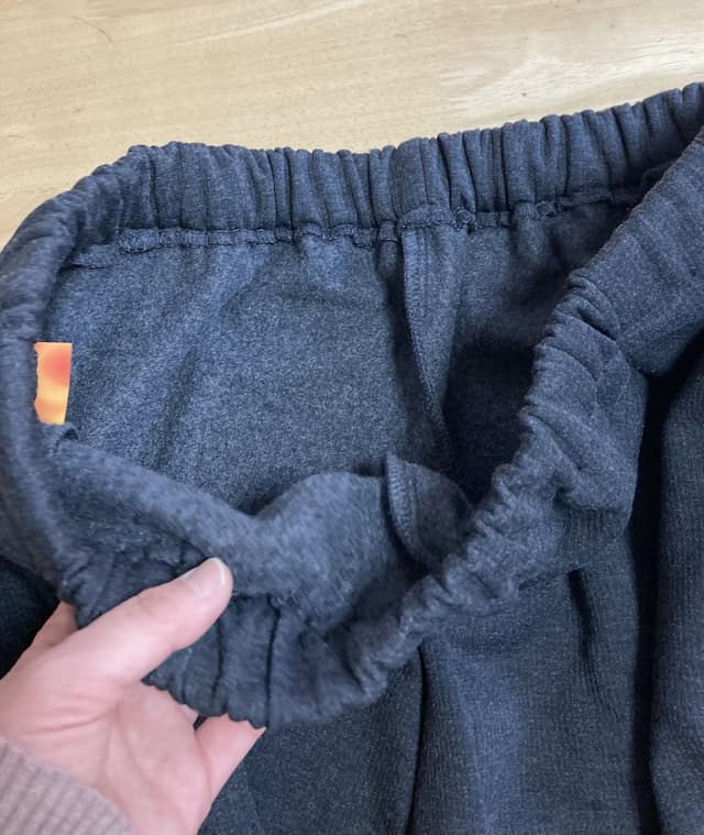 このあったかパンツはウエストゴムがすごく柔らかくて、指1本でビヨーンビヨーン伸びます。
