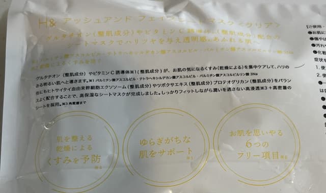 【H&】アッシュアンド フェイスシートマスク【新作】クリアタイプ(美白タイプ)の使ってみた感想【口コミ・レビュー】
