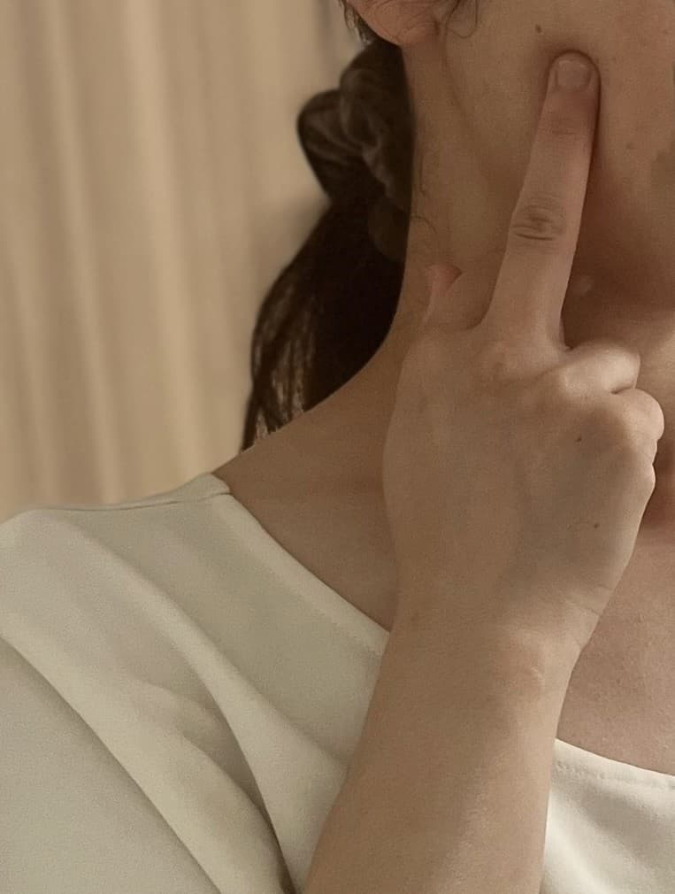 ③マスクを取り、肌に残った美容液を手のひらでなじませる
