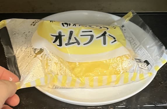 オムライスのまわりに5~6か所フォークの先くらいの穴をあけ、お皿に載せて電子レンジで温めます。